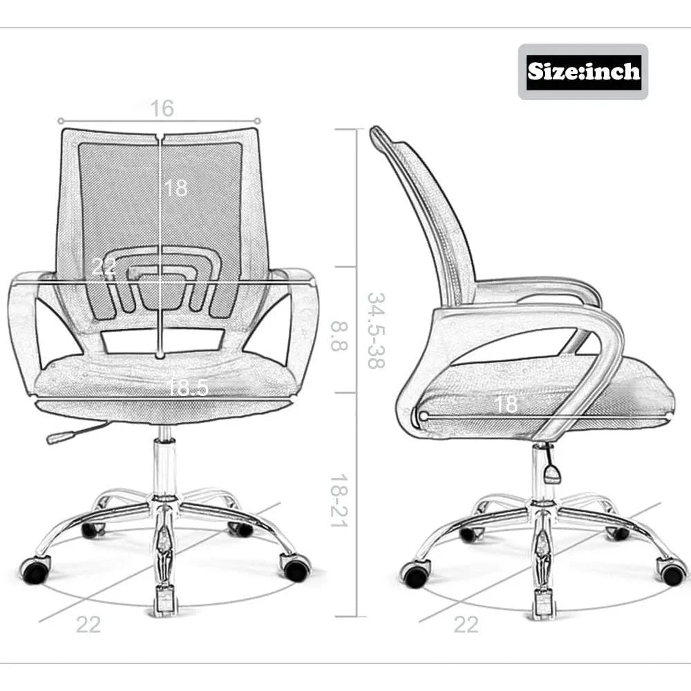 Experience unparalleled comfort and support with our premium ergonomic mesh office chair, designed to transform your workspace into a haven of productivity and relaxation. Crafted with advanced lumbar support technology, this chair actively alleviates back pain and discomfort, allowing you to focus on what matters most—whether you're tackling demanding work projects, immersing yourself in intense gaming sessions, or simply enjoying leisure time at your desk. Key Benefits That Set This Chair Apart: • Superior Ergonomic Design: Engineered with a human-centric approach, our chair promotes optimal posture and full mobility. The contoured seat and backrest cradle your body naturally, reducing strain on your spine and muscles during long hours of use. • Breathable Mesh Material: Stay cool and comfortable all day long with the high-quality mesh fabric that enhances airflow, preventing sweat and heat buildup. It's perfect for warm environments or extended sitting periods. • Fully Adjustable Features: Customize your seating experience effortlessly! The chair offers easy height adjustment, a 360-degree swivel base for seamless movement, and smooth-rolling casters that glide quietly on any floor surface. Lock the backrest in an upright position for focused tasks or recline slightly for moments of relaxation. • Durable and Sturdy Construction: Built to last, this chair meets rigorous quality standards (BIFIMA certified) and supports up to 250 pounds. The robust frame and reinforced components ensure stability and safety, making it a reliable choice for home offices, corporate settings, or gaming setups. • Quick and Simple Assembly: Get set up in no time! We include all necessary hardware and clear, step-by-step instructions. In just 10-15 minutes, you'll have your chair ready to enhance your daily routine—no technical skills required. Ideal For Every Scenario: - Home Office Professionals: Boost productivity with a chair that combats fatigue and supports your well-being through hectic workdays. - Gamers: Elevate your gaming experience with comfort that keeps you engaged during marathon sessions. - Students and Remote Workers: Create an ergonomic study or work environment that fosters concentration and reduces physical stress. - Creative Minds: Whether you're designing, writing, or brainstorming, this chair provides the comfort needed to unleash your creativity. Why Choose This Chair? It's not just about sitting—it's about investing in your health and efficiency. By prioritizing ergonomics, we help you avoid the common pitfalls of poor seating, such as neck strain, lower back pain, and decreased focus. Join thousands of satisfied users who have reclaimed their comfort and productivity. Don't let discomfort hold you back; upgrade your space today and feel the difference from the first sit! Take the next step toward a more comfortable lifestyle. Add this essential office companion to your cart now and transform how you work, play, and relax. Your body will thank you!
