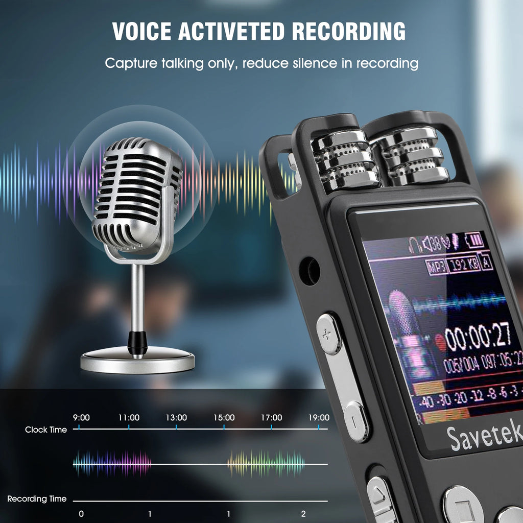 Savetek New Arrival Portable USB Pen 8GB 16GB 32GB Voice Activated Digital Audio Voice Recorder With Mp3 Player 50hours Recording Black Color Support additional Micro SD card External Microphone